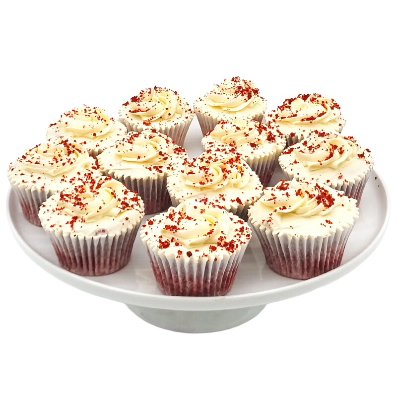 These red velvet cupcakes consist of red chocolate sponge, with tasty cream cheese frosting and vibrant red velvet crumbs.